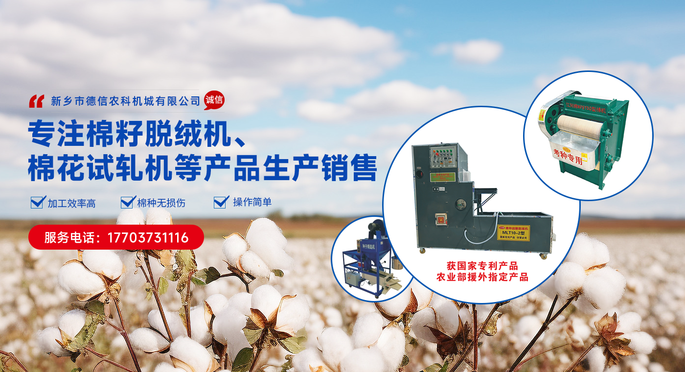 新鄉市德信農科機械有限公司,成立于2018年,位于河南省新鄉市紅旗區洪門鎮。毗鄰107國道、京港澳高速公路、高鐵站、汽車東站,地理位置十分優越、交通便利,四通八達。 是一家專注于各種農業科研育種加工等機械及配件的開發、生產裝配和銷售,服務為一體的企業。公司主要產品有種子脫粒機,棉花軋花機、棉花試軋機,米子棉清理機、棉子脫絨機,種子精選機六大系列及各種配件等。產品注重于經濟性、廣泛適應性和可操控性,以精湛的技術力量。良好的企業信譽,得到廣大新老客戶的好評。 企業始終以用產滿意為目標,以人為本、創新為先、質量優先、持續改進,竭誠服務、終身維護的質量管理方針;從創新技術,生產銷售產品,提供服務為企業宗旨。堅持“用戶優先、服務為本”的經營準則,確保用產使用時放止順心稱心